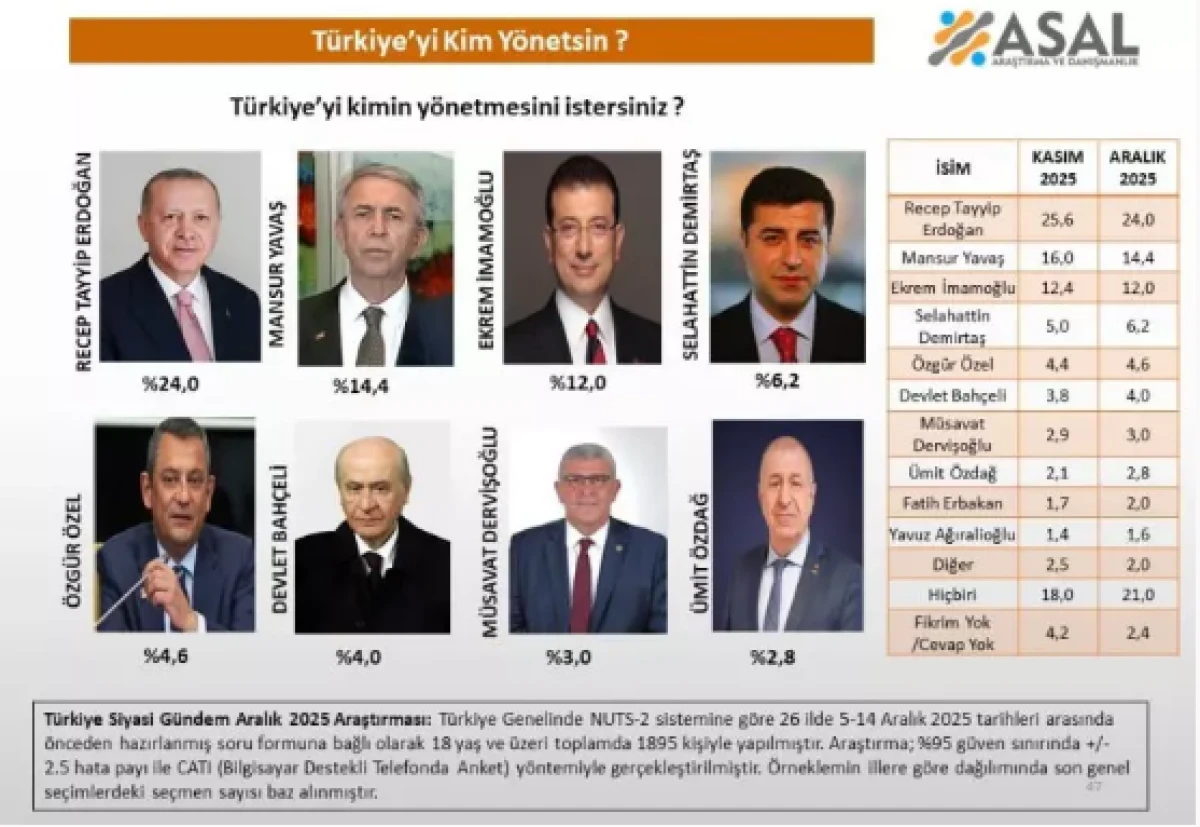 5-14 Aralık 2025 tarihleri arasında bin 895 kişinin katılımıyla gerçekleştirilen kamuoyu araştırması sonuçlarına göre, Türkiye'nin siyasi tercihlerinde ve toplumsal beklentilerinde çarpıcı veriler ortaya çıktı.