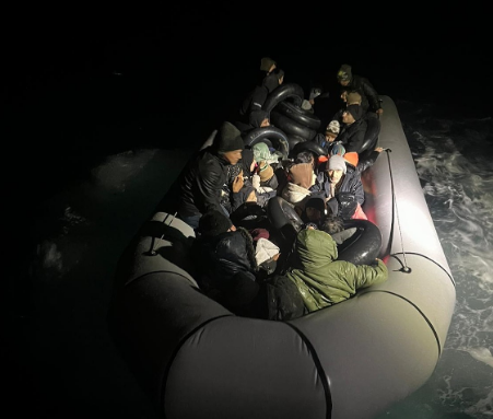 Edinilen bilgiye göre, Balıkesir’in Ayvalık ilçesi açıklarında görevli Sahil Güvenlik Botu (KB-32) tarafından tespit edilen hareketli lastik bot durduruldu ve içerisindeki 19’u çocuk 40 düzensiz göçmen yakalandı.