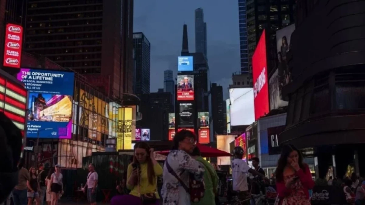 Cumhurbaşkanı Recep Tayyip Erdoğan’ın "Dünya 5’ten büyüktür" ve "Daha adil bir dünya mümkün" sözü, Times Meydanı'ndaki led ekranlara yansıtıldı