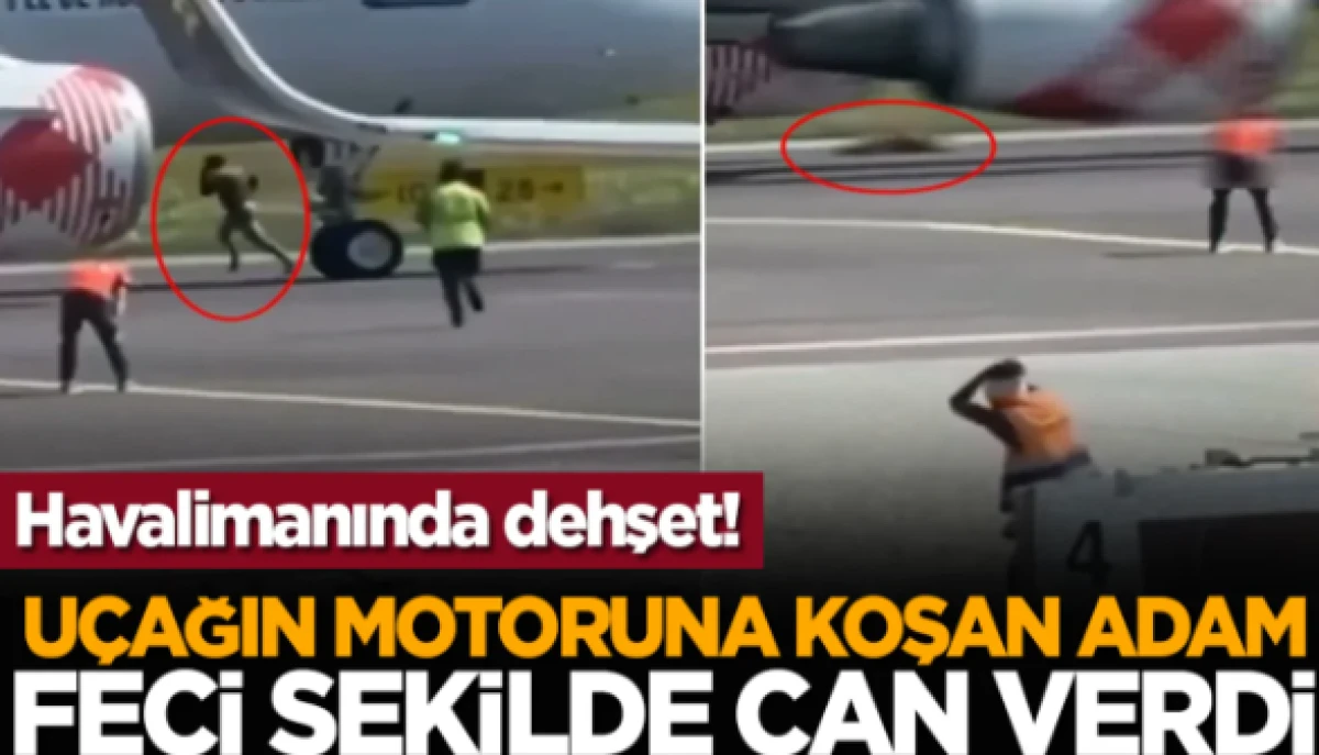 Havalimanında dehşet! Uçağın motoruna atlayan adam feci şekilde can verdi
