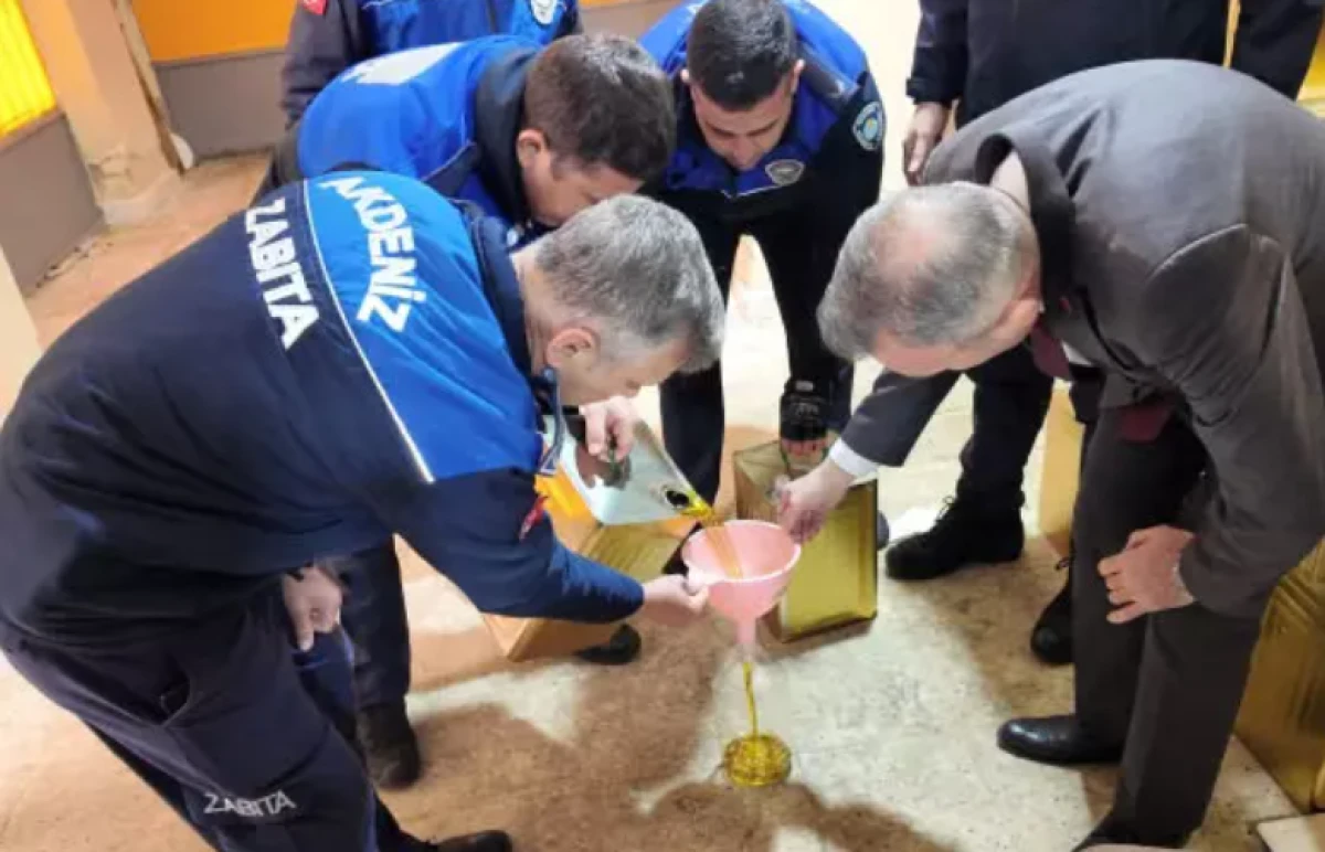 Akdeniz Belediyesi Zabıta Müdürlüğü ekipleri, ilçeye bağlı Yenimahalle'de bulunan bir depoda sahte zeytinyağı bulunduğu yönündeki ihbar sonrası harekete geçti.