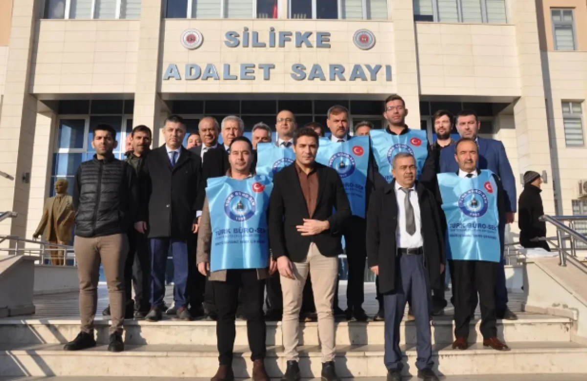 Olay sonrasında Türk Büro-Sen Mersin 2 No'lu Şube üyeleri Silifke Adliyesi önünde bir araya geldi.